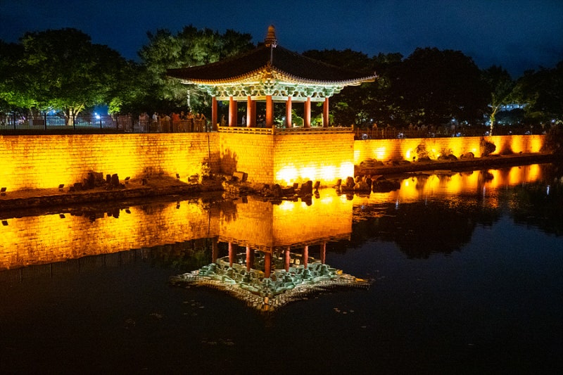 경주는 사계절이 모두 아름답지만, 겨울에는 특히 야경이 또렷하고 선명하다는 매력이 있습니다. 관광객이 한산해져 고요한 분위기를 즐기기에도 좋고, 맑은 공기 속 전각 조명이 연못에 비치는 모습은 겨울에만 감상할 수 있는 특별한 장면이에요.