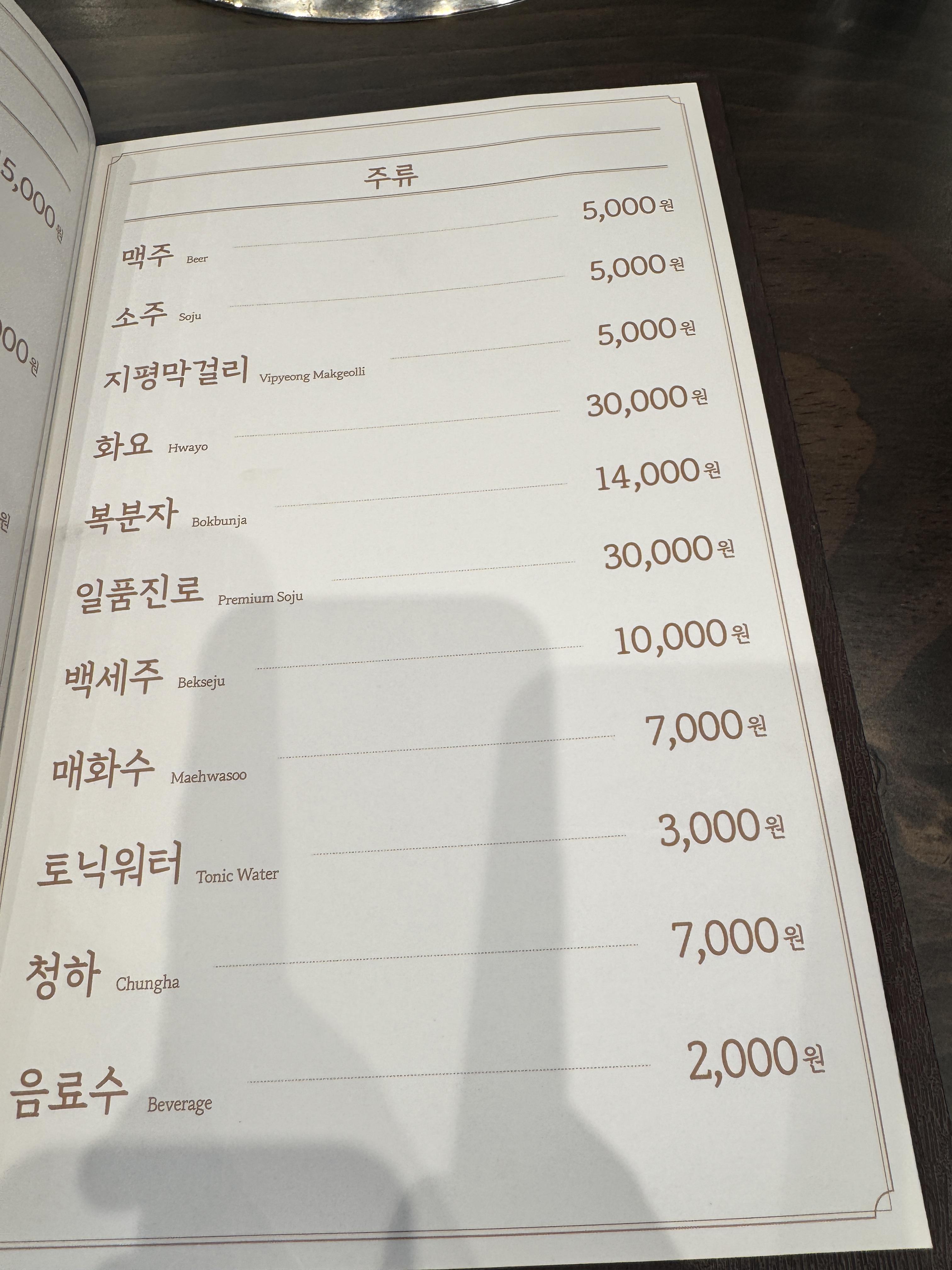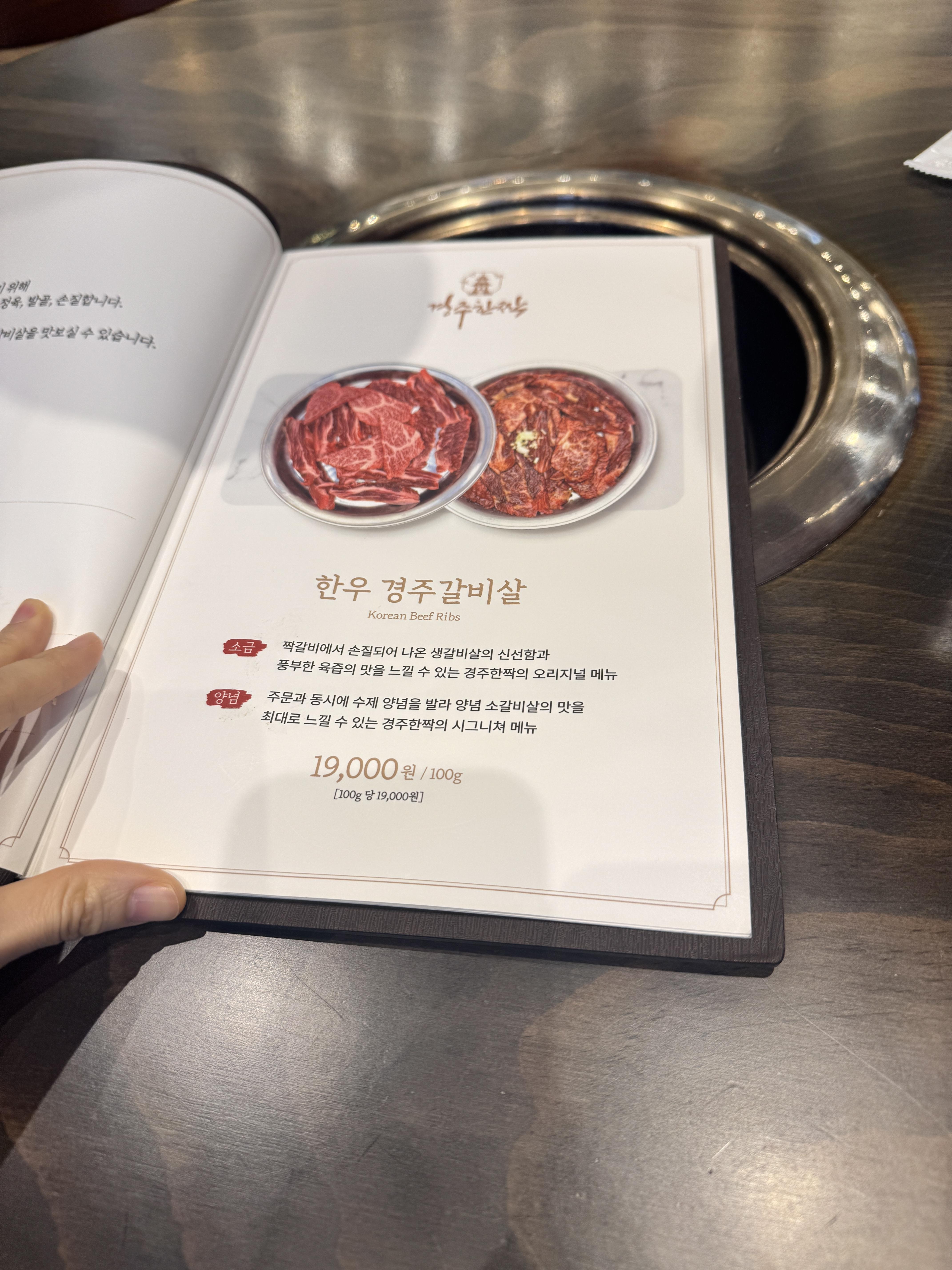 저희는 여기서 갈비살과 나머지 후식 메뉴들(된장찌개, 잔치국수, 누룽지, 냉면) 먹어보았어요.
